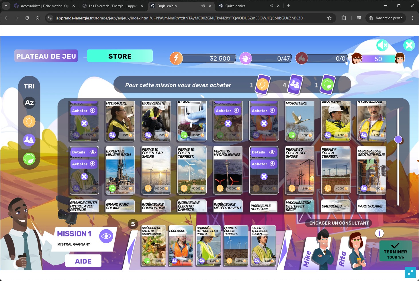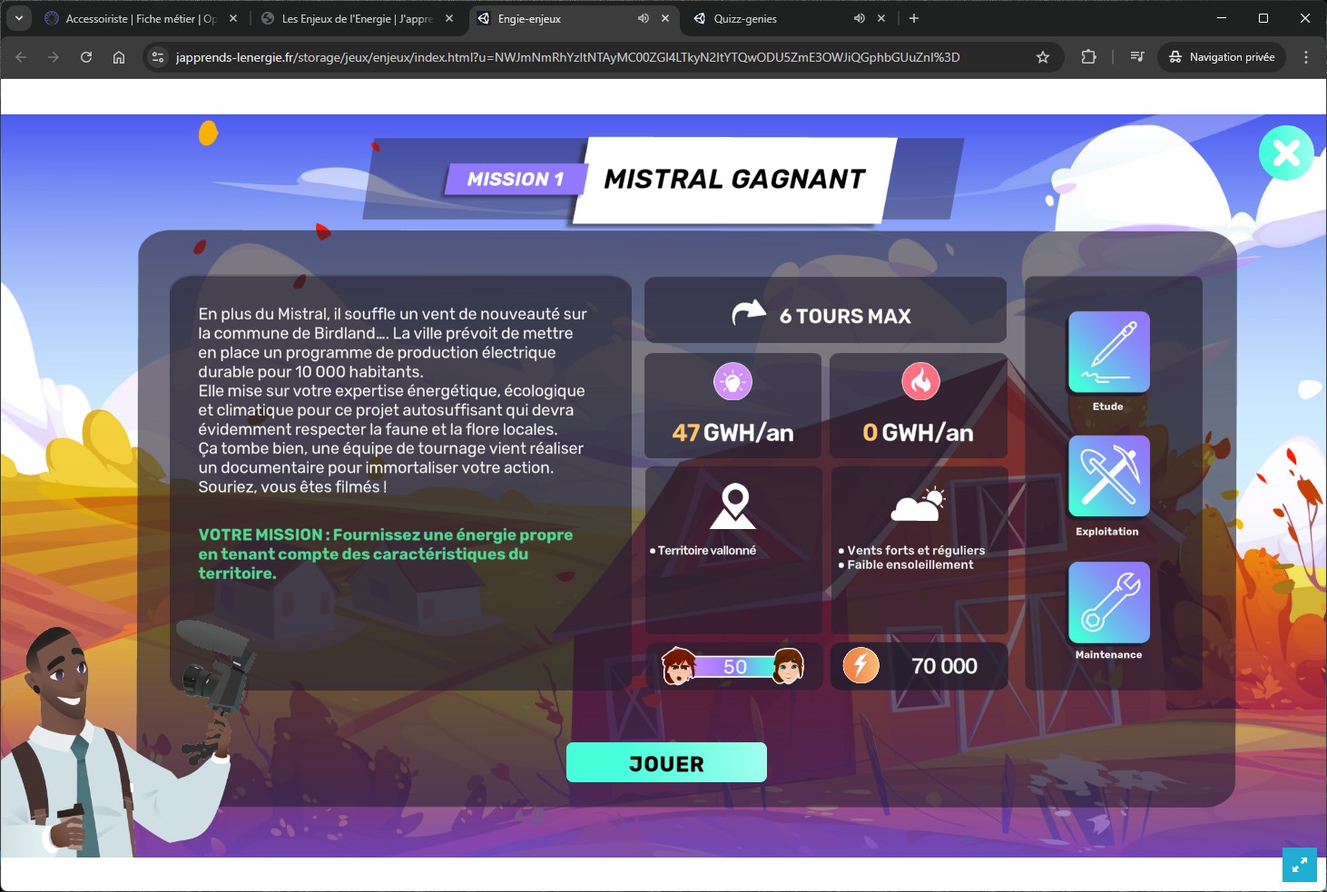 J’apprends l’énergie est une plateforme éducative créée par Engie à destination des élèves du primaire, collège et lycée. En 2023, nous avons été sollicités pour développer deux jeux interactifs et ludo-éducatifs abordant les enjeux de l’énergie et du mix énergétique.