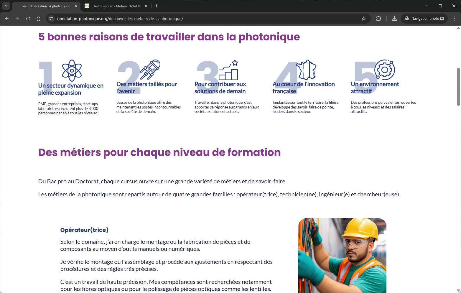 - Secteur : Photonique / Orientation professionnelle